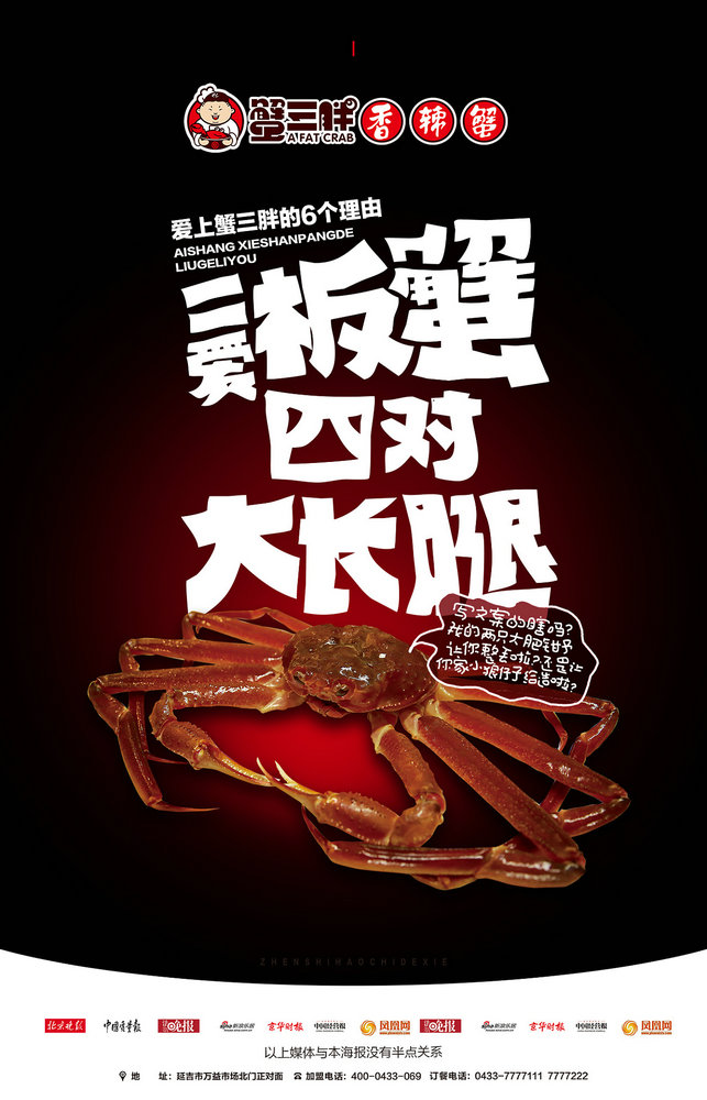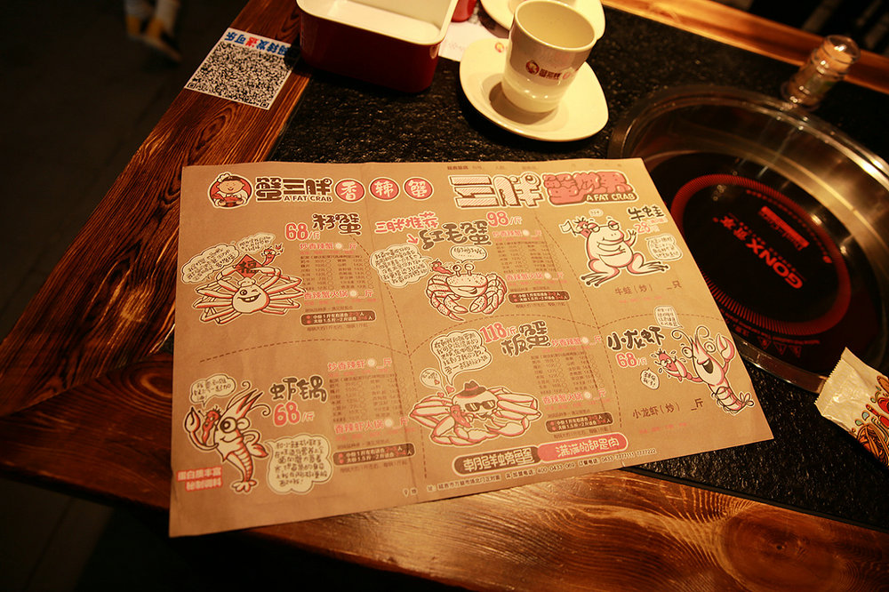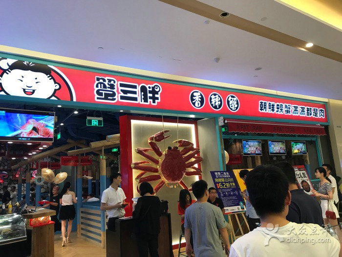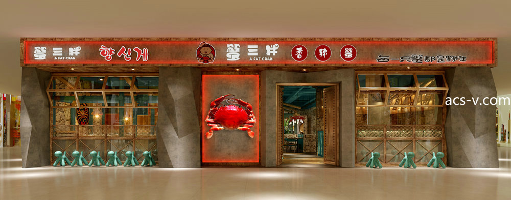蟹三胖深海蟹是近年來發展迅速的一家海鮮深海蟹連鎖品牌,靠自己的品質和服務在快時尚餐廳這個大行業下沖出了一片天地。成為了連鎖餐飲行業的一匹黑馬,更是在網絡上掀起了熱議。蟹三胖的店鋪裝修設計成統一的VI加以適當的創意改造,形成了與同品牌其他店鋪的差異化裝修風格。避免了其它連鎖品牌的不同店鋪,同樣的裝修風格,店鋪沒有自己的特色,容易讓顧客產生視覺疲勞。