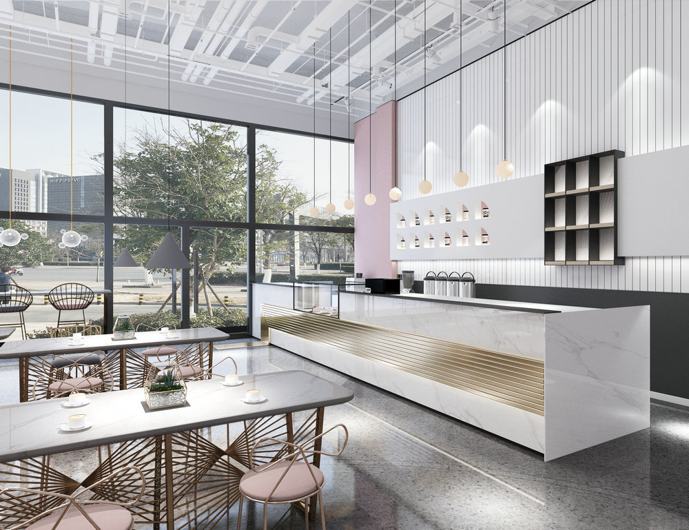 7、連鎖品牌奶茶咖啡店設計裝修。裝修設計的風格要做到概符合主流消費趨勢以及時尚簡約的調性、輕松有格調又顯得舒服、衛生、簡潔、大方。其中,要特別注意吧臺的流線功能規劃設計,要根據產品需求和設備配備情況進行程序設計,操作流暢的同時盡可能考慮產品的更進和設備的添加所需空間。