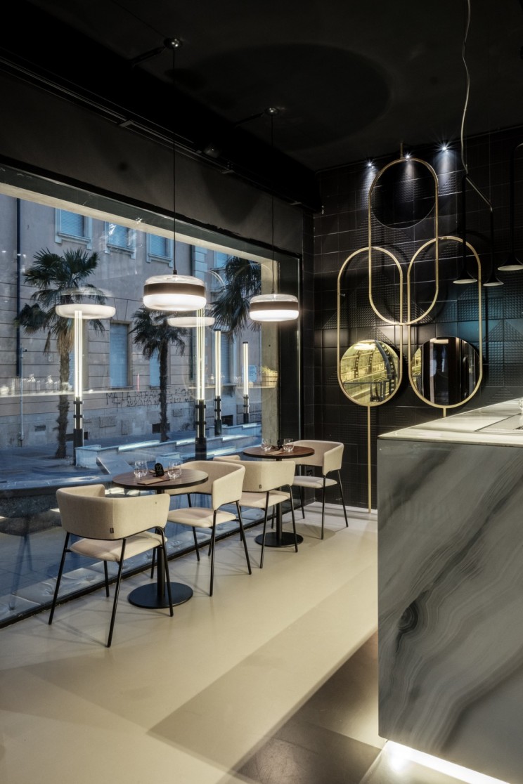餐飲場所主要由營業部分,加工及輔助部分和內部管理辦公部分組成,軟裝飾設計主要集中在經營區域,包含用餐區,前廳、過道等空間。