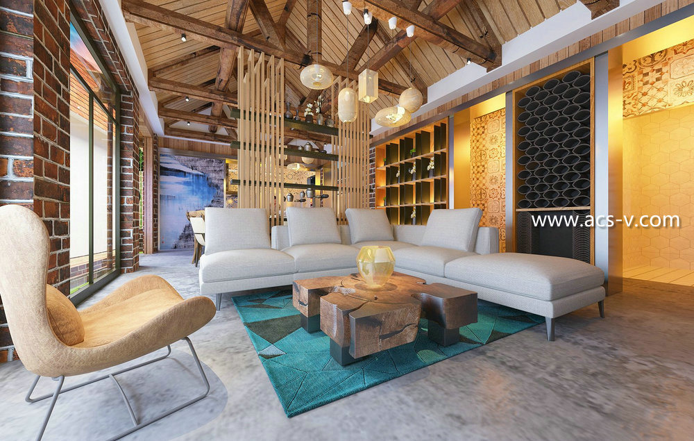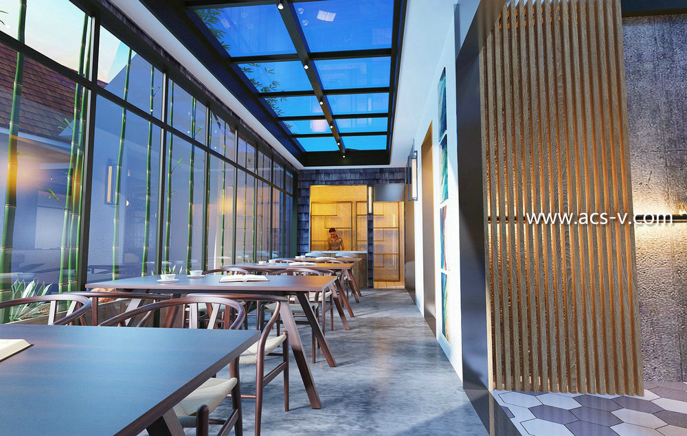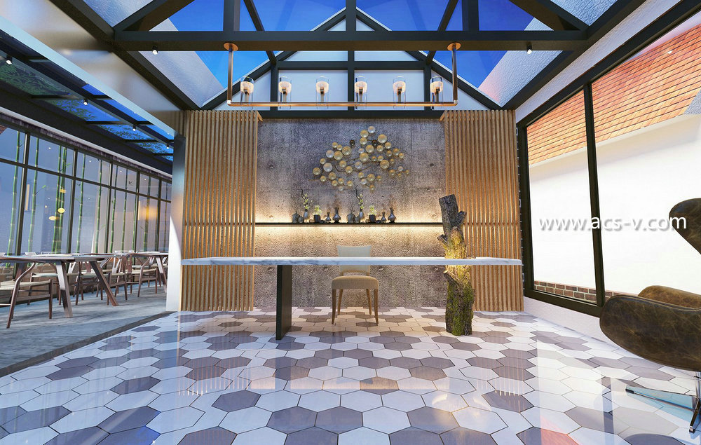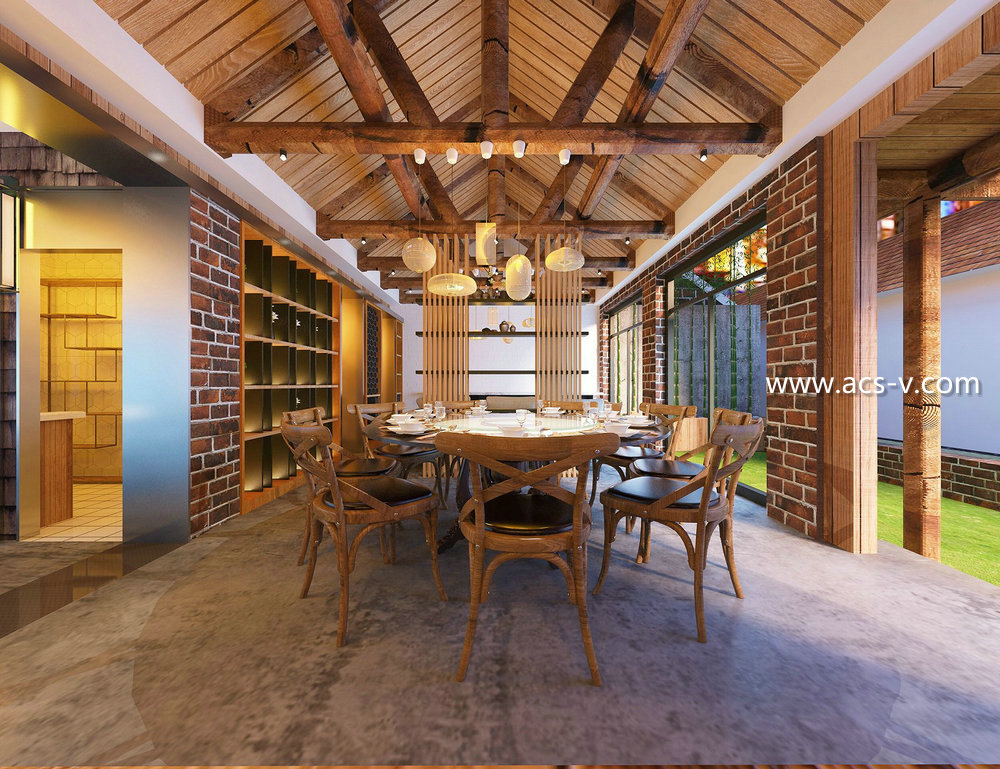 裝飾材料:水波紋不銹鋼定制、榆木老木料、柚木、杉木、火燒巖板、拉絲不銹鋼、水磨石、銅制吊墜、竹編、鐵藝等