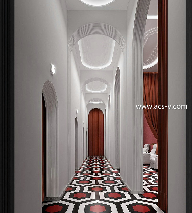6、指示系統:由于小空間的轉換很多,水療房的形式又會有相似之處,而特色指示牌具有可識別的景觀節點,主題雕塑等都可以起到指示作用。