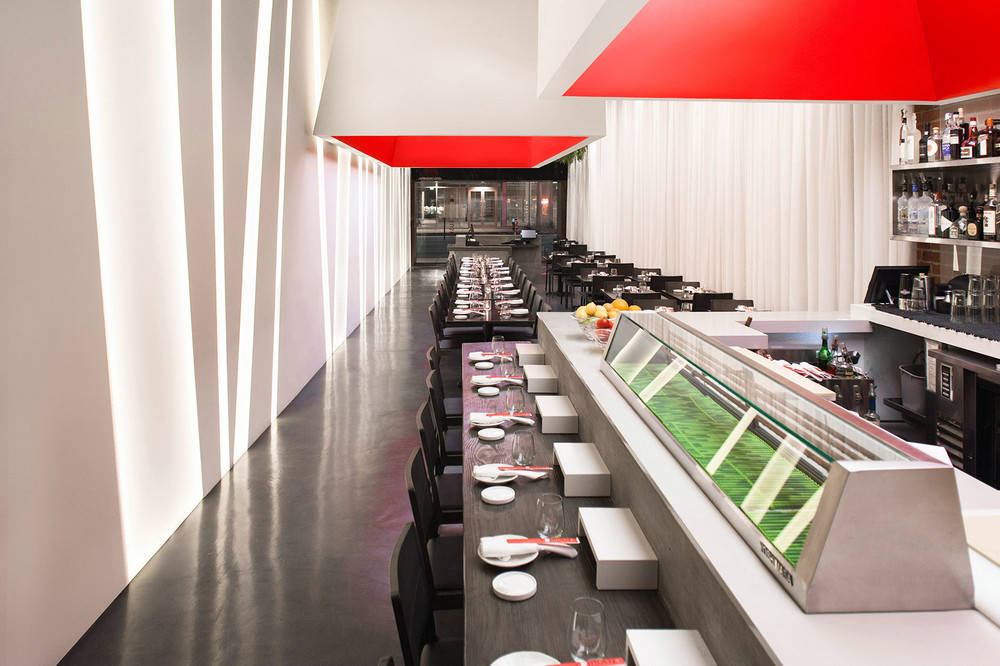 Yojisan日料餐廳位于兩側(cè)布滿高端商店和大棕櫚樹的大道上,為其所在環(huán)境帶來了令人耳目一新的創(chuàng)新感、獨特感和現(xiàn)代感。不同于比弗利山莊現(xiàn)有的墨守成規(guī)的設計,Yojisan餐廳的室內(nèi)空間設計結合著壽司的特色,打造出一種前所未有的觀感體驗。最終,Yojisan餐廳日料店設計通過使用傳統(tǒng)的日本材料,結合日本文化和生活習慣,創(chuàng)造出一種簡單卻強有力的視覺沖擊效果。麥哲倫設計事務所分享說:另類且結合食材本源的歸宿打造出了全世界最新的網(wǎng)紅日式料理店設計作品。