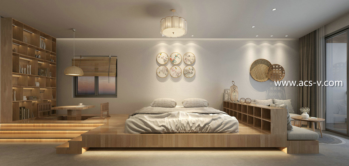 主要材料:氣孔水磨石、仿古磚、榆木、柏木、硅藻泥、軟包硬包等