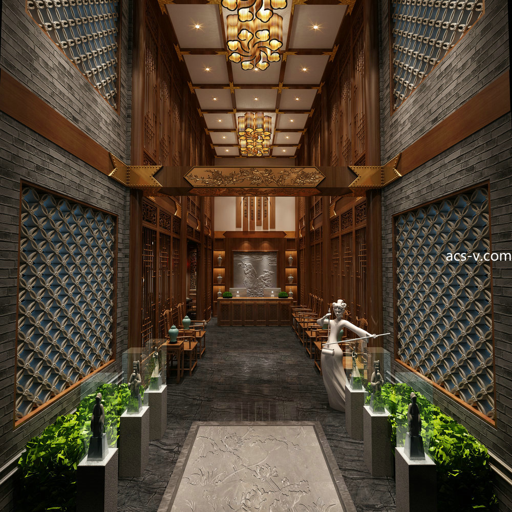 設(shè)計主要材料:青石板,松木,柏木,楠木,中式定制家具,鈦金。