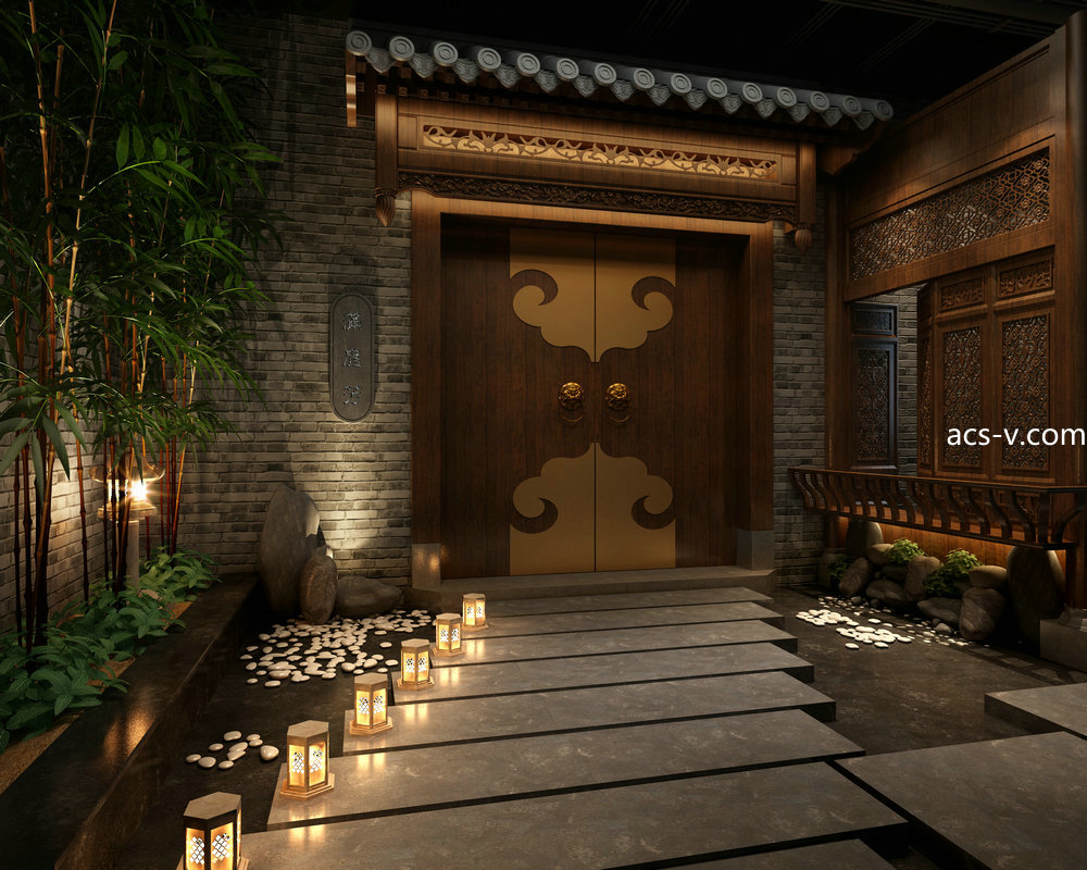 設計主要材料:青石板,松木,柏木,楠木,中式定制家具,鈦金。