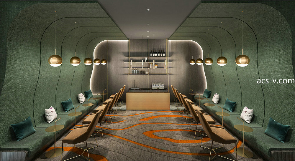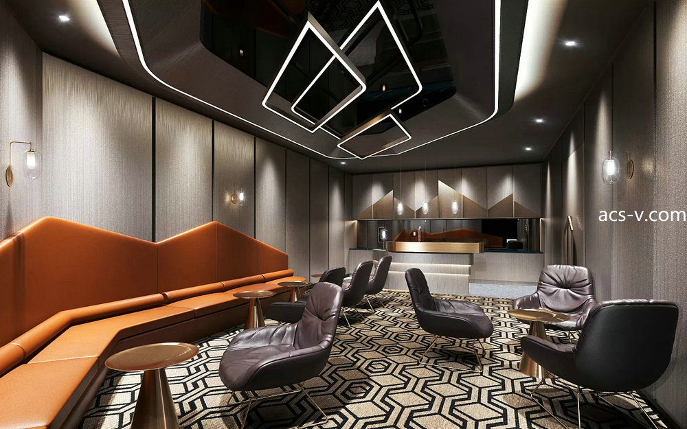 設計主要材料:地坪漆、人造石、大理石、PVC聚氨酯吸塑燈板、不銹鋼、藝術玻璃、鋁合金定制
