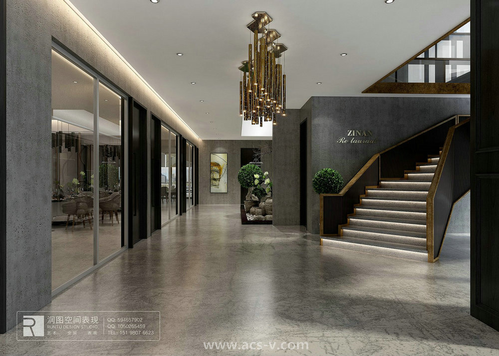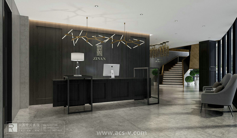 設計主要材料:天然大理石、黑色鈦鋼、鈦金、巖石板、鍍鋅方通、地坪漆、定制設計師家具
