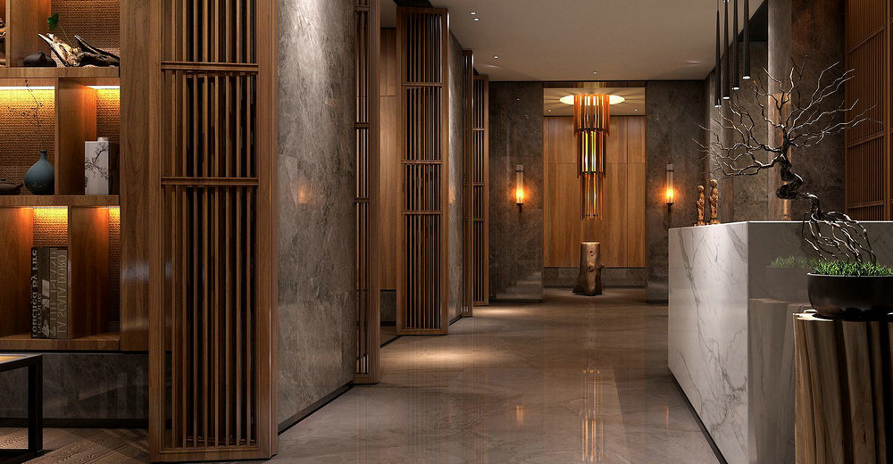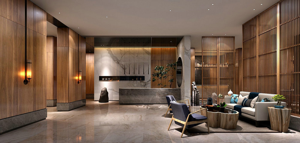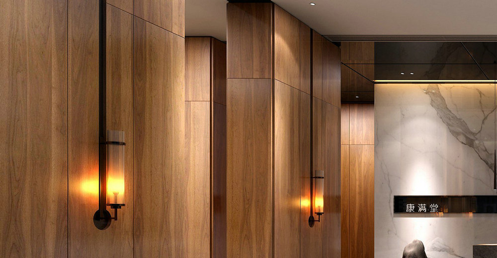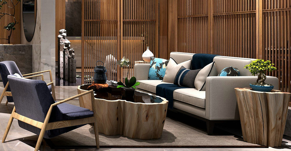 設計主要材料:杉木、榆木、樺木、柚木飾面板、天然大理石、鈦金條、定制中式家具
