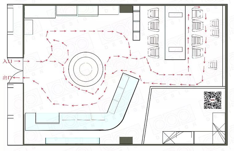 服務人員的主要工作為迎賓、遞菜單、報菜名、上菜、結賬等服務環(huán)。為了使工作效率最大化,餐廳服務區(qū)的動線也應該采取直線設計,且盡量避免曲折前進,還要避開顧客的動線及進出路線,在同一通道上的動線不宜過多過密,避免與顧客發(fā)生碰撞。