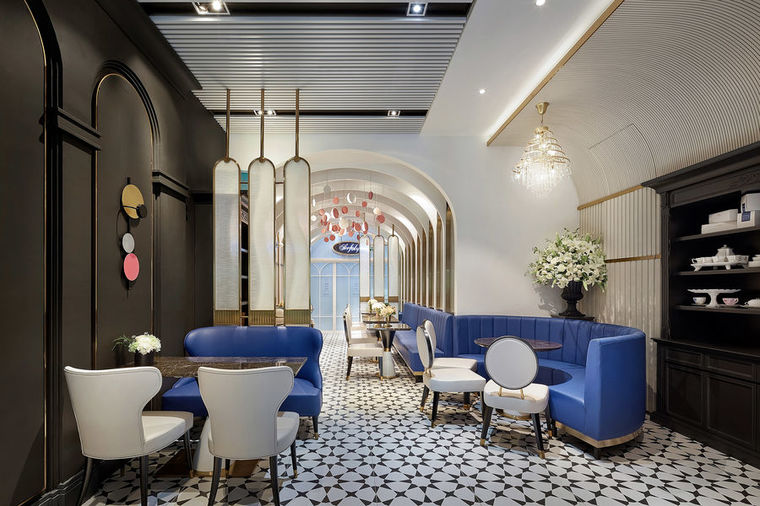 燈光的色調是用來幫助餐廳去調動顧客情緒和用餐氛圍的,如網(wǎng)紅店面《青山研究所》,是一家以科學實驗室為主題的甜品店,為了營造一種冰冷的科技感,燈光采用白色調,跟空間主色調青綠色以及金屬元素搭配。